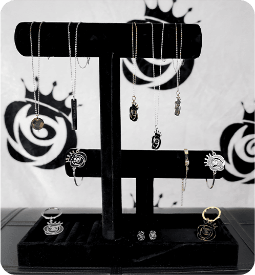 Our jewelry line features a wide variety of stunning pieces, including necklaces, bracelets, earrings, and more. Each piece is carefully crafted with love and attention to detail, making them the perfect addition to any outfit.